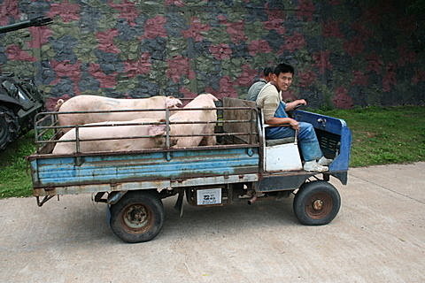 鐵漢堡前巧遇軍方的救護車及百姓的運豬車