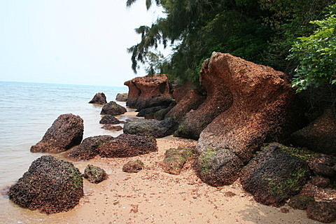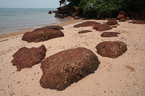 貓公石是海岸邊的紅土層崩坍掉到潮間帶後