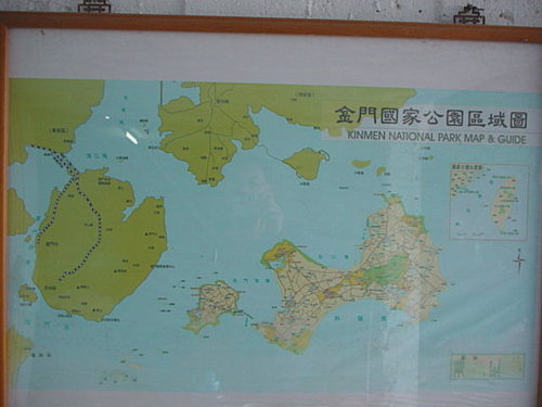 地圖中右邊那個長的有點像狗骨頭的島,是金門島