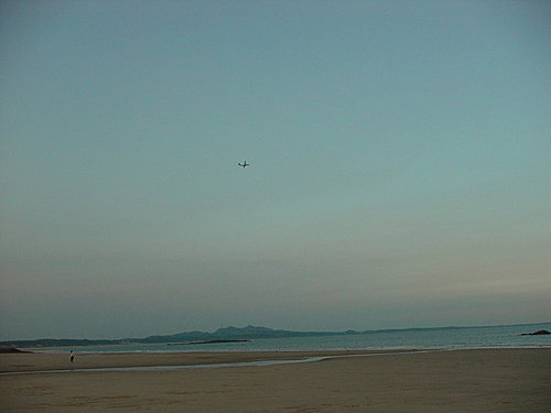 抬頭看著剛起飛,正在轉頭航向台灣的班機,感覺好奇妙